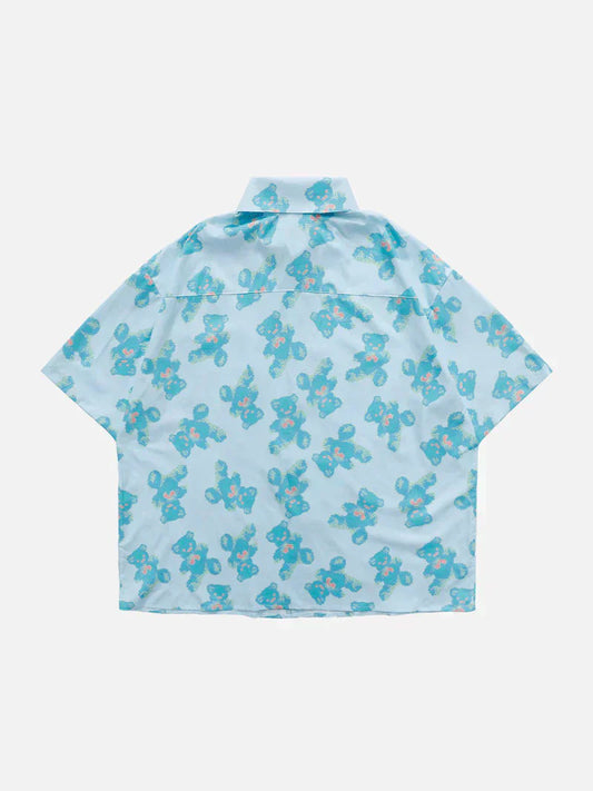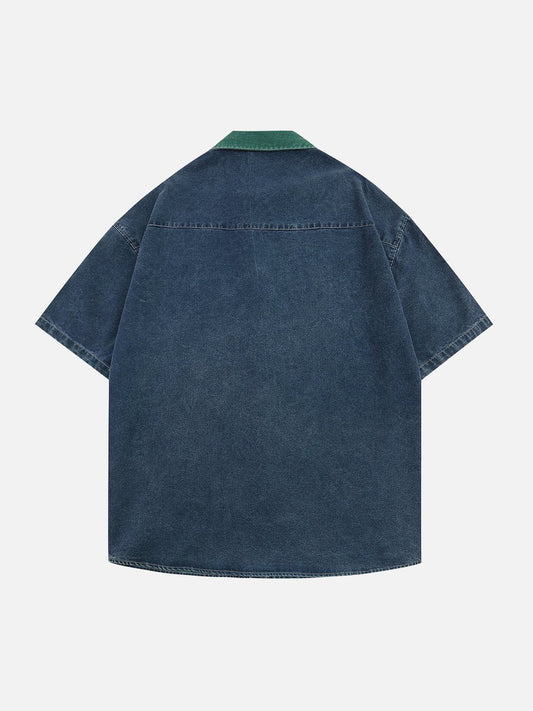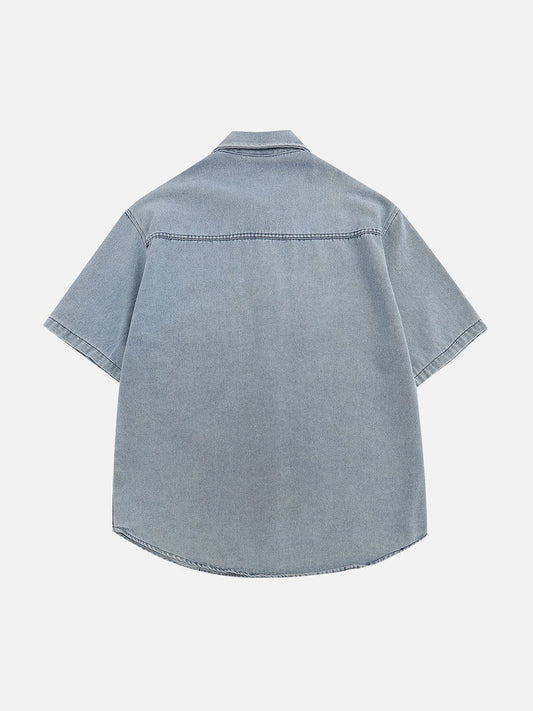 Elyma - Cartoon Stickerei Denim Kurzarmhemden